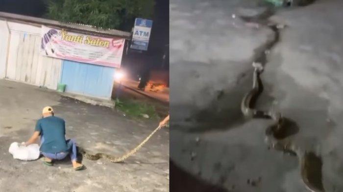 Situasi penangkapan ular piton yang lepas itu pun ramai dan viral di media sosial usai diunggah akun @riauzoneofficial.id, Rabu (24/4/2024).