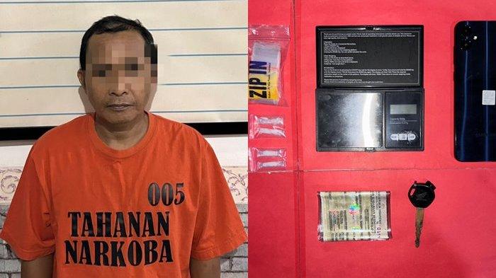 Polisi mengamankan LH (48) pria asal Desa Pagat, Kecamatan Batu Benawa, Kabupaten HST. Saat digeledar di rumahnya, polisi mendapatkan 4 paket sabu