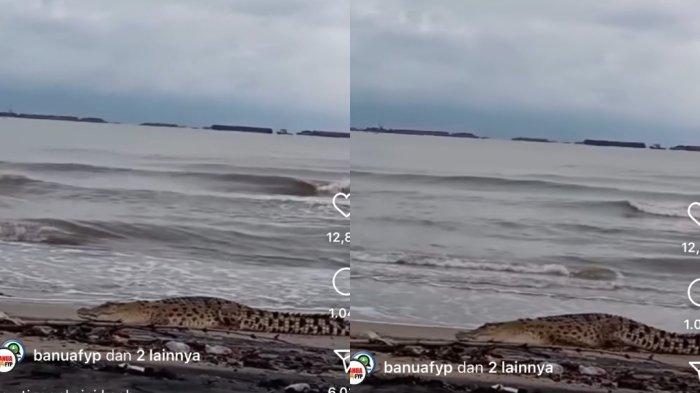 Dalam video tersebut tampaku buaya yang tengah berjemur di bagian bibir pantai.