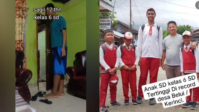 “Sagil Muhammad Rizki (12) Seorang siswa yang masih duduk di bangku Sekolah Dasar (SD) ini memiliki tinggi badan melebihi orang dewasa. Siswa SD Negeri 36/III Belui, Kecamatan Depati Tujuh, Kabupaten Kerinci, Provinsi Jambi ini pun saat ini viral di kalangan masyarakat.