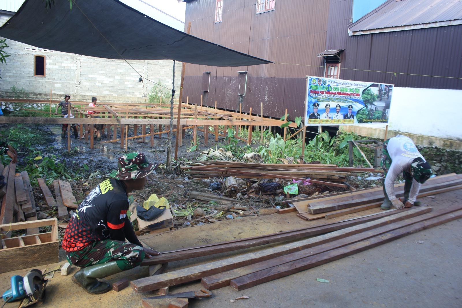 Satgas TMMD ke-120 Kodim 1001/HSU-Balangan, tengah dalam proses membangunkan bangunan khusus untuk Posyandu di Kabupaten HSU