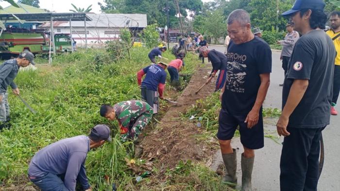 Cegah Genangan Air Saat Hujan, Aparat Hingga Warga Gotong Royong Bersihkan Parit di Desa Banua Pagat
