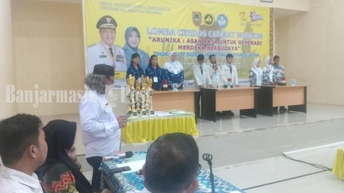 Tim Cerdas Cermat dari SMPN 3 Kotabaru, juara satu Lomba Cerdas Cermat Museum (LCCM) tingkat SMP sederajat oleh Museum Lambung Mangkurat.