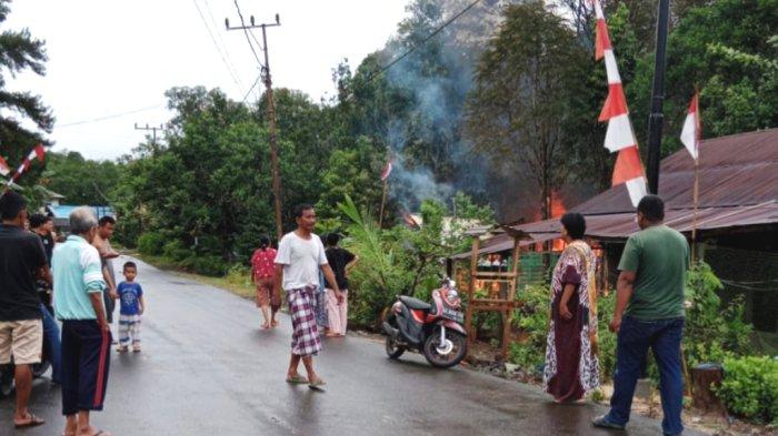 Kebakaran menghanguskan satu rumah diperkirakan terjadi sekitar pukul 10.00 Wita. Api cukup besar membakar bangunan rumah kayu, karena bersamaan hujan mulai reda.