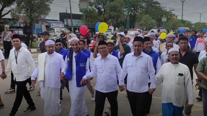 Bersama sembilan partai politi, tokoh agama, tokoh masyarakat dan pendukung lainnya, pasangan H Fani-Habib Taufan, berjalan kaki menuju Kantor KPU Tabalong di Jln H Usman Dundrung, Tanjung Selatan.