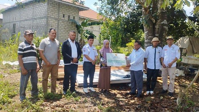 Badan Amil Zakat Nasional (Baznas) Tala membantu material bahan bangunan senilai Rp 10 juta seperti kayu (papan, balok) dan atap.