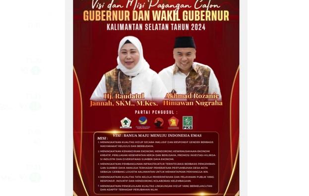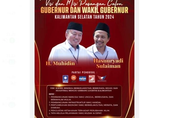 Inilah visi dan misi calon Gubernur dabn Wakil Provinsi Kalimantan Selatan, ada paangan H Muhidin dan Hasnuryadi dan Hj Raudatul Jannah dan Rozanie