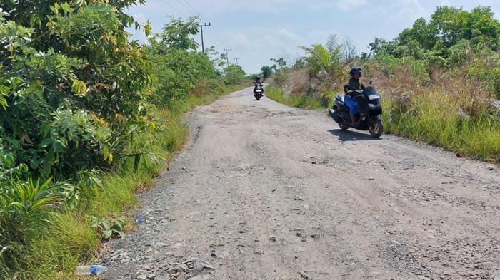 Kerusakan fisik sporadis menyelubungi jalan utama di Desa Muara Asamasam, Kecamatan Jorong, Kabupaten Tanahlaut (Tala)