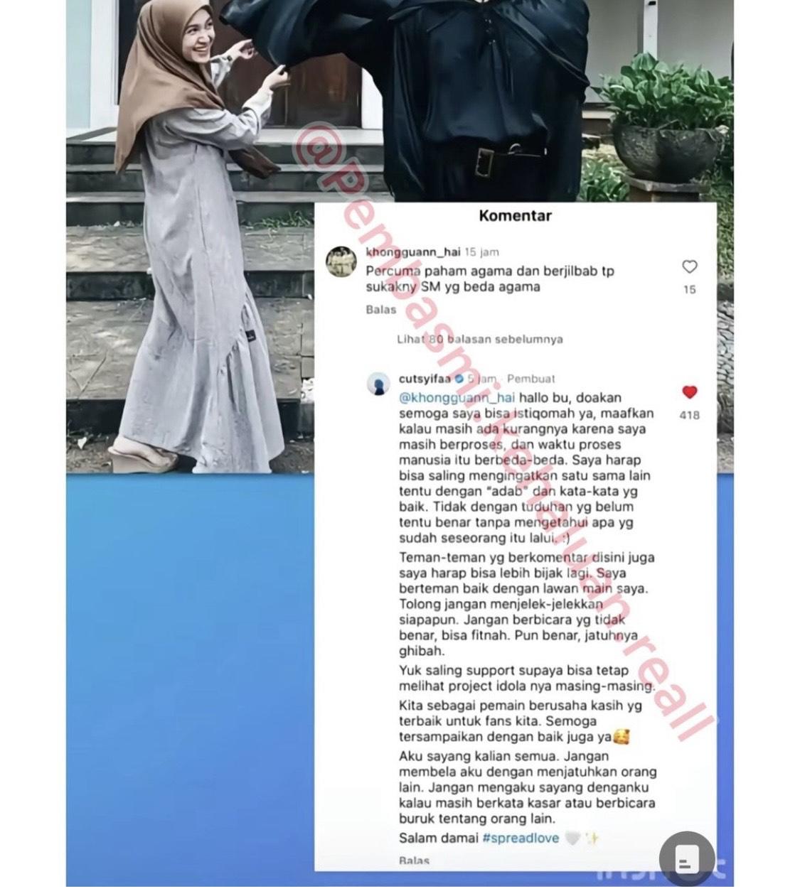 Tapi ada juga sebagian netizen yang justru mencibir Cut Syifa soal kedekatannya dengan Mischa karena perbedaan kepercayaan antara keduanya.
