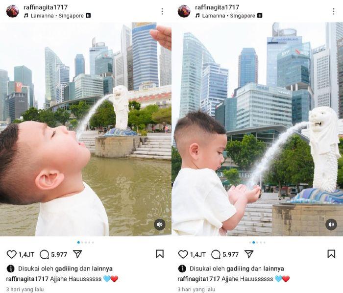 Masih membagikan foto-foto liburan di Singapura, tingkah Rayyanza pun makin membuat netizen gemas.
