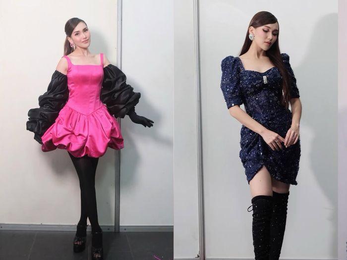 Beberapa gaya busana Ayu Ting Ting yang dirancang oleh brand desainer Ayumi.
