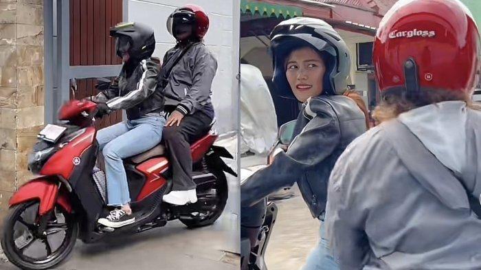 Bersama asisten pribadinya, Nurul Ragil Rustami, Ayu terlihat berboncengan dari rumah.