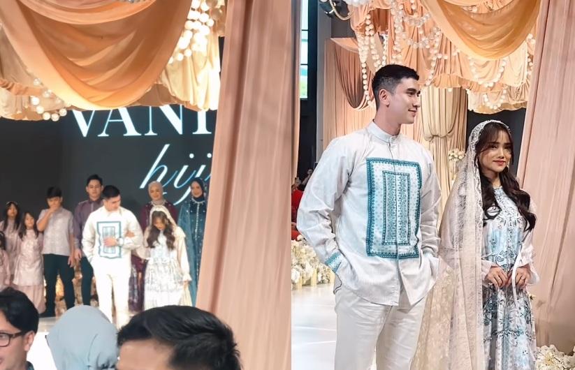 Sekali lagi Fuji dan Verrel nampak kompak berjalan beriringan, namun kali ini mengenakan busana muslim dengan warna senada.
