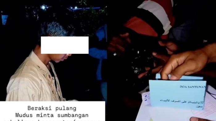 Tampak dalam unggahan video keempat pemuda tersebut mengenakan gamis dan peci untuk meyakinkan para korban.