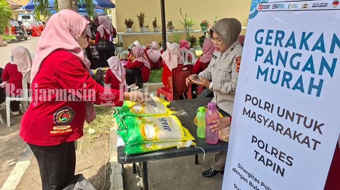 Kegiatan tersebut sekaligus menjadi bagian dari aksi Gerakan Pangan Murah yang digelar Polres Tapin.