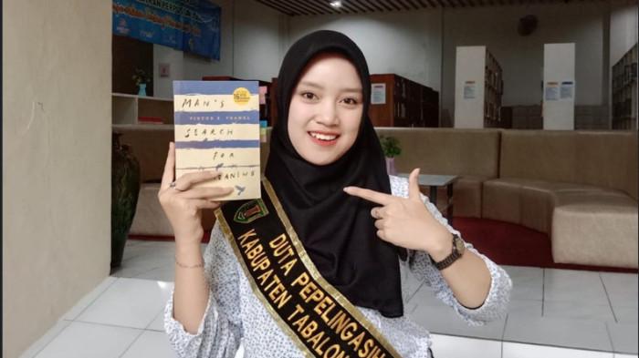 Nursalsabila, Wakil 1 Duta GenRe Kabupaten Tabalong 2025 yang mengoleksi banyak novel.