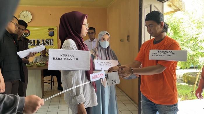 Rekonstruksi kasus pembunuhan terhadap Bidan Hj Rahmaniah (58) di Banjarmasintelah digelar. Tersangka dihadirkan peragakan 33 adegan