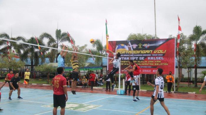 Memperingati Hari Olahraga Nasional Kanwil Kemenkumham Kalsel menggelar seleksi bibit-bibit atlet Voli di Lapas Narkotika Kelas IIA Karang Intan.