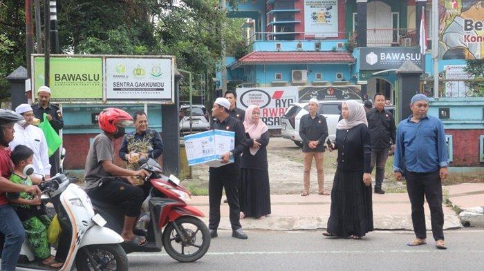 Menyasar tetangga sekitar kantor dan pengendara yang melintas, jajaran Bawaslu Tabalong, membagikan takjil gratis