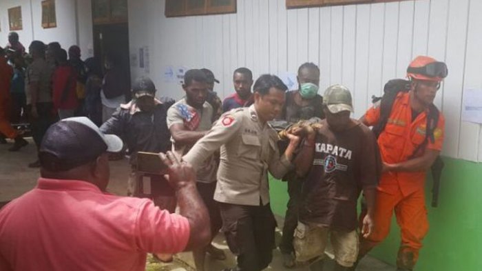 persiapan penjemputan korban yang akan diangkat sudah terlihat. Terlihat 15 ambulans sudah diparkir disamping Base Ops Lanud Jayapura
