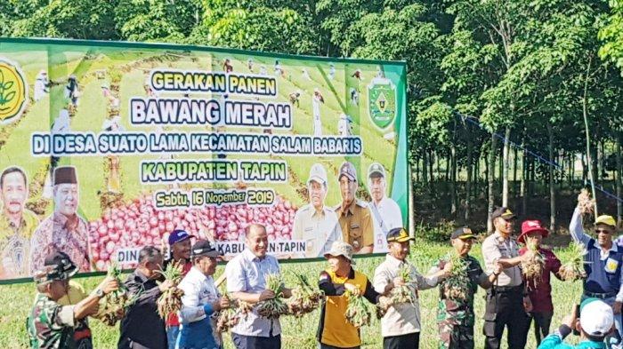 Tapin, sudah melakukan uji coba menanam bawang merah dan berhasil panen 8,5 ton per hektare.