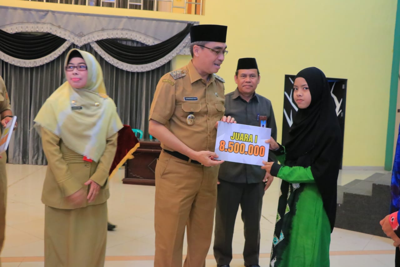 Wakil wali kota Banjarbaru Darmawan Jaya Setiawan menyerahkan bonus kepada peserta MTQ Nasional XXXI Tabalong