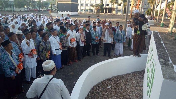 Pemantapan simulasi dalam ibadah haji dilakukan oleh Jamaah Calon Haji (JCH) Kelompok Terbang (Kloter) 11 asal Kota Palangka Raya, Kamis (25/7/2019).