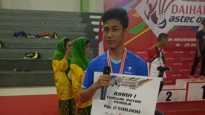 Pebulutangkis klub Berkat Abadi, Banjar, Lukman Nul Hakim mempersembahkan medali emas di nomor tunggal pemula putra
