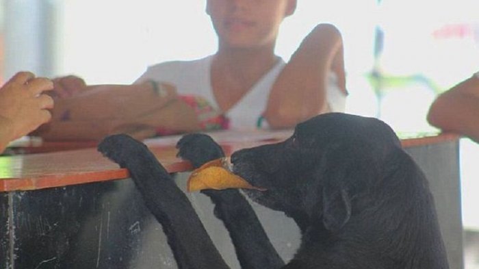 Anjing berbulu hitam itu bernama Negro yang tinggal di Institut Pendidikan Diversifikasi Teknik di Monterrey, Kolombia.
