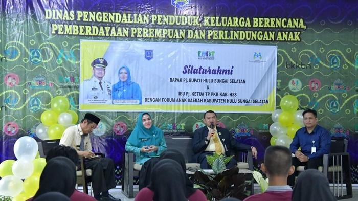 Bunda Forum Anak yang juga Pj Ketua PKK HSS memberikan motivasi kepada anggota forum anak HSS untuk berani melapor jika dibully