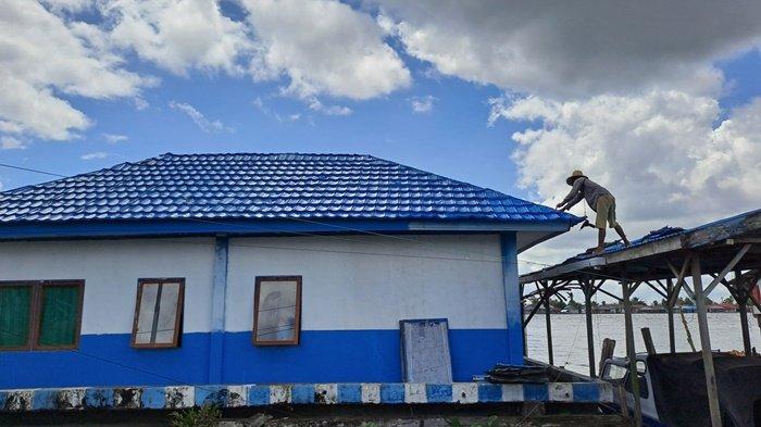 Rusak Setelah Disenggol Tongkang, Empat Pekerja Perbaiki Kantor UPT Dinas Perhubungan Batola