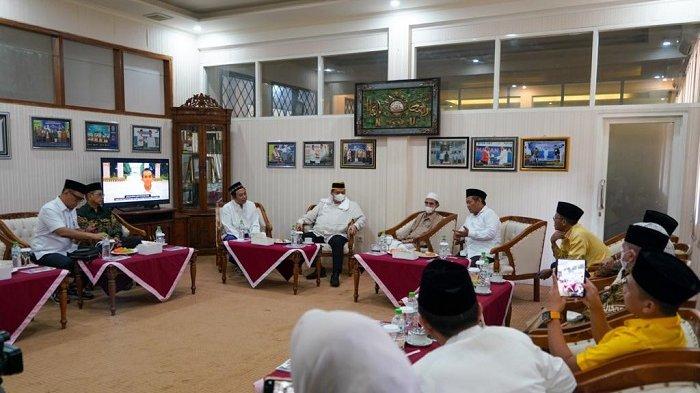 Menko Airlangga Hartarto mendapat sambutan meriah saat mengunjungi Pondok Pesantren Nurul Jadid, di Paiton, Probolinggo