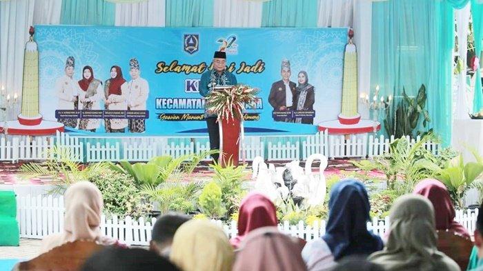 Bupati HSS Achmad Fikry dan Ketua TP PKK Isnaniah menghadiri Hari Jadi Kecamatan Angkinang ke-72. Panitia sajikan menu serba singkong kepada para tamu