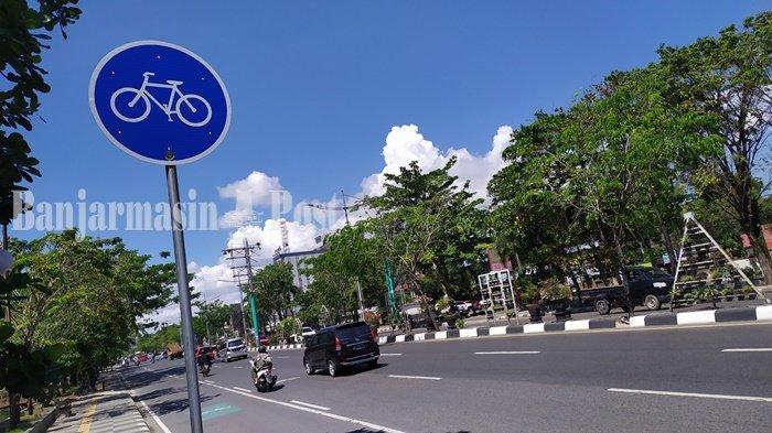 Adanya jalur sepeda yang baru dibuat sejak sepekan lalu rupanya mendapat perhatian dari warga Banjarmasin.