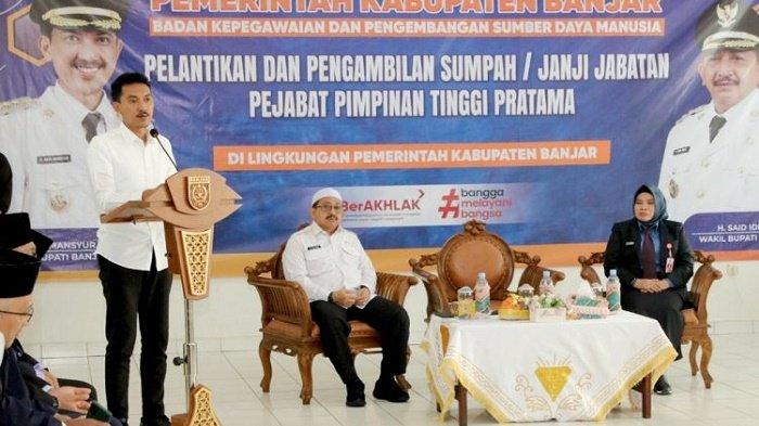 Bupati Banjar H Saidi Mansyur melantik dan mengambil sumpah Direktur RSUD Ratu Zalecha dan Kadis Damkar dan Penyelamatan