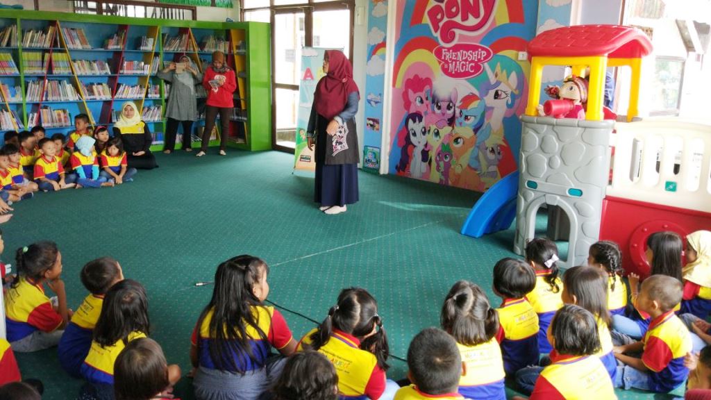 Di sela-sela sambutannya, Paman Birin juga mengajak anak-anak untuk mendengar dia berdongeng.