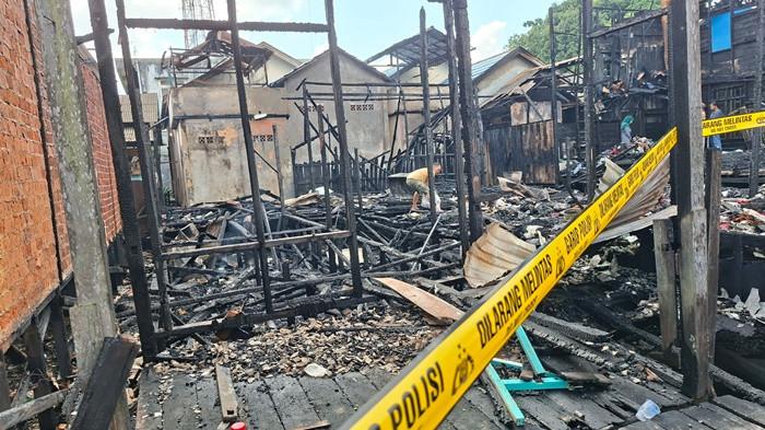 Kebakaran menghanguskan 28 rumah dan satu buah poskomling terjadi di RT 09 dan 13, Gang Sekata, Kelurahan Kotabaru Hulu