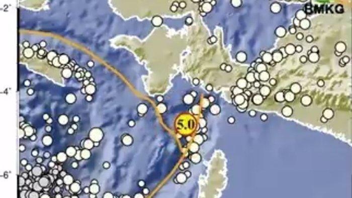 Gempa Bumi goyang Barat Laut Kepulauan Aru Maluku magnitudo 5.0, Minggu 30 April 2023, pukul 05:38:00
