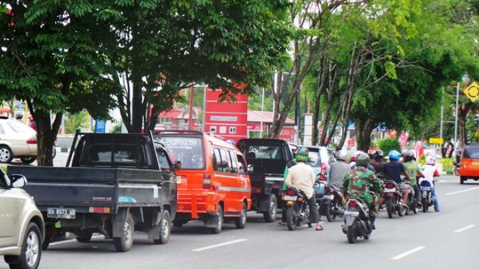 aktivitas pada sejumlah SPBU Palangkaraya begitu kentara. Ini diindikasi dari jumlah antrean kendaraan yang membeludak