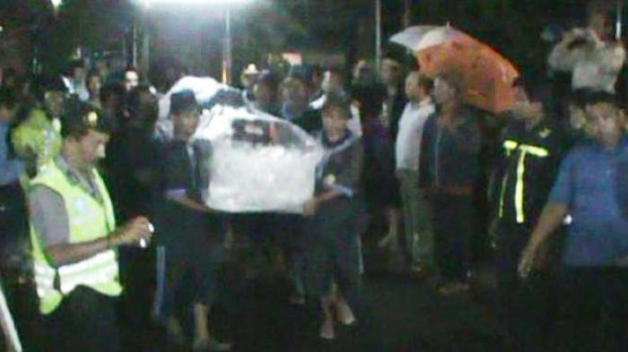 Jenazah pramugari AirAsia di penerbangan QZ8501, Khairunisa Haidar, sudah tiba di lokasi pemakaman, Jumat malam (2/1/2015).