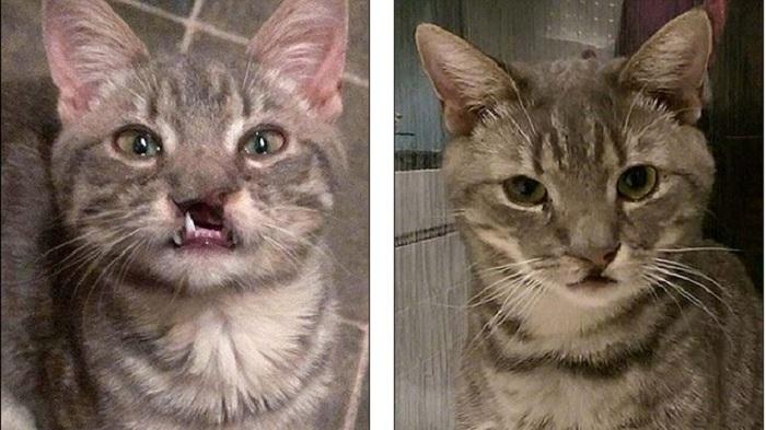 Kucing ini ditemukan berada di semak-semak dengan sebilah pisau sepanjang enam inci menantap di kepalanya di Kota Sevastopol, di Semenanjung Krimea,