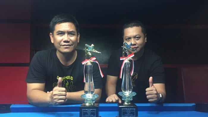Dua pejabat daerah di Banua, Gubernur Kalsel H Sahbirin Noor dan Ketua DPRD Kalsel Supian HK adu skill bermain biliar bola 10 di Royal Biliar