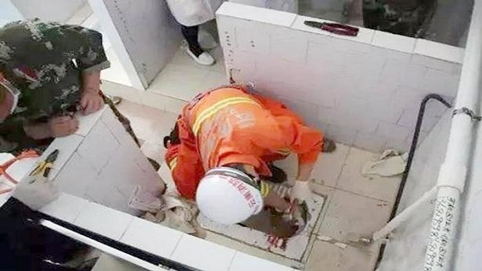 Bayi yang tidak disebutkan jenis kelaminnya tersebut, bisa diselamatkan setelah tigha jam petugas melakukan pembongkaran kloset di toilet itu.