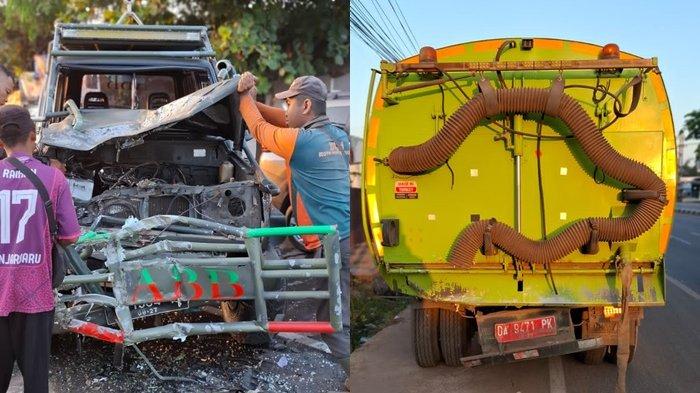 Daihatsu Feroza Warna Hijau Nopol KH 1304 AN menabrak mobil penyapu jalan di Jalan A Yani Kilometer 23 ecamatan Lianganggang, Banjarbaru