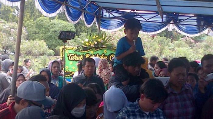 Bocah lelaki yang mengenakan baju putih dan bercelana hitam itu tak henti-hentinya menangis
