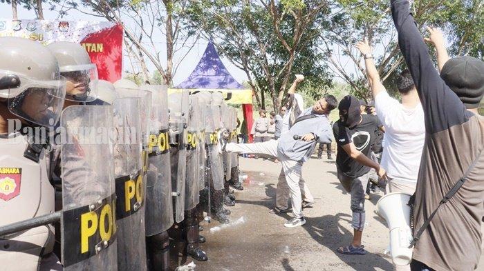 Simulasi sispamkota pemilu 2024 diadakan Polres Hulu Sungai Selatan di halaman Stadion 2 Desember, Kota Kandangan, Kabuapten HSS, Kalsel.