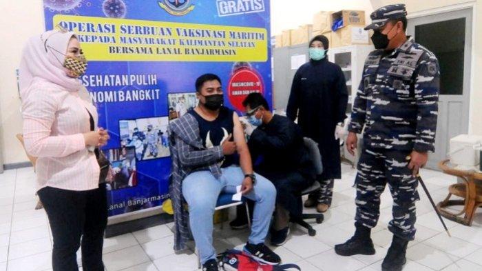 Wakil Bupati Seruyan, Provinsi Kalteng, Hj Iswanti mengunjungi kegiatan rutin vaksinasi covid-19 yang dilaksanakan Pangkalan TNI-AL Banjarmasin