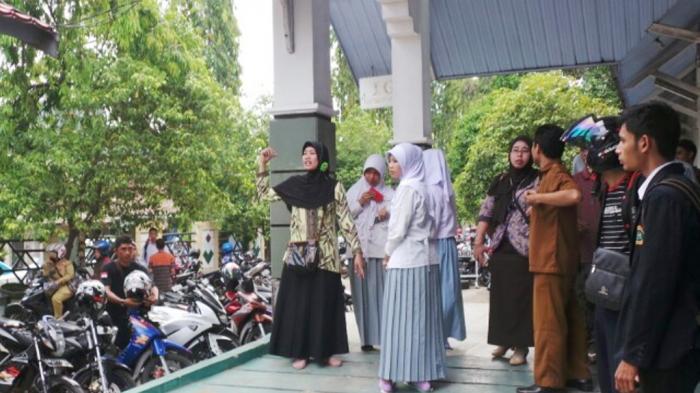 Para siswa MA Plus Zamzam Djailani tak kuasa menahan tangis begitu mengetahui korban tabrak lari di Jalan A Yani Km 26 Banjarbaru