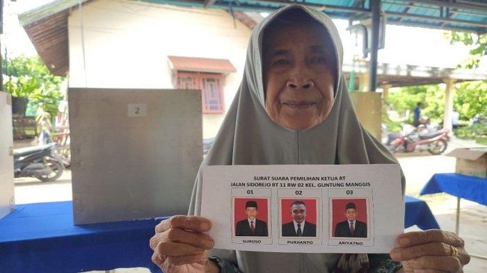 Proses demokrasi pemilihan langsung ketua rukun tetangga (RT) berlangsung di Jalan Sidorejo, RT 11 RW II, Kelurahan Guntung Manggis,