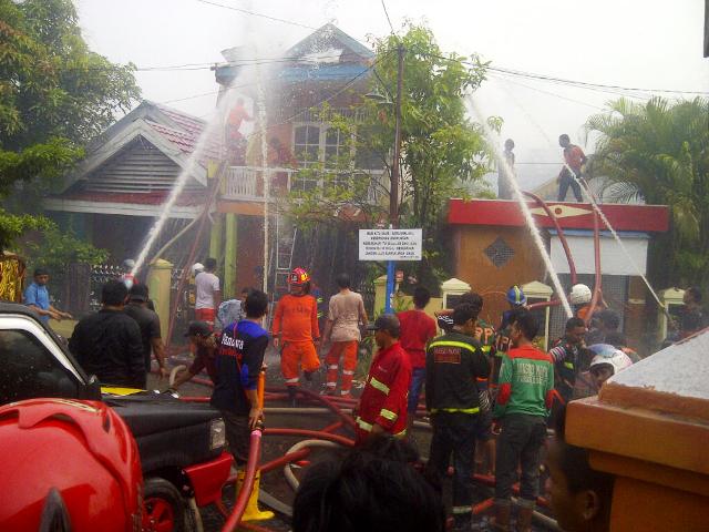 ada beberapa rumah yang kena imbas jilatan si jago merah yang terjadi di Jalan A.Yani Kilometer 4,5 belakang HBI Gg.Al Hidayah